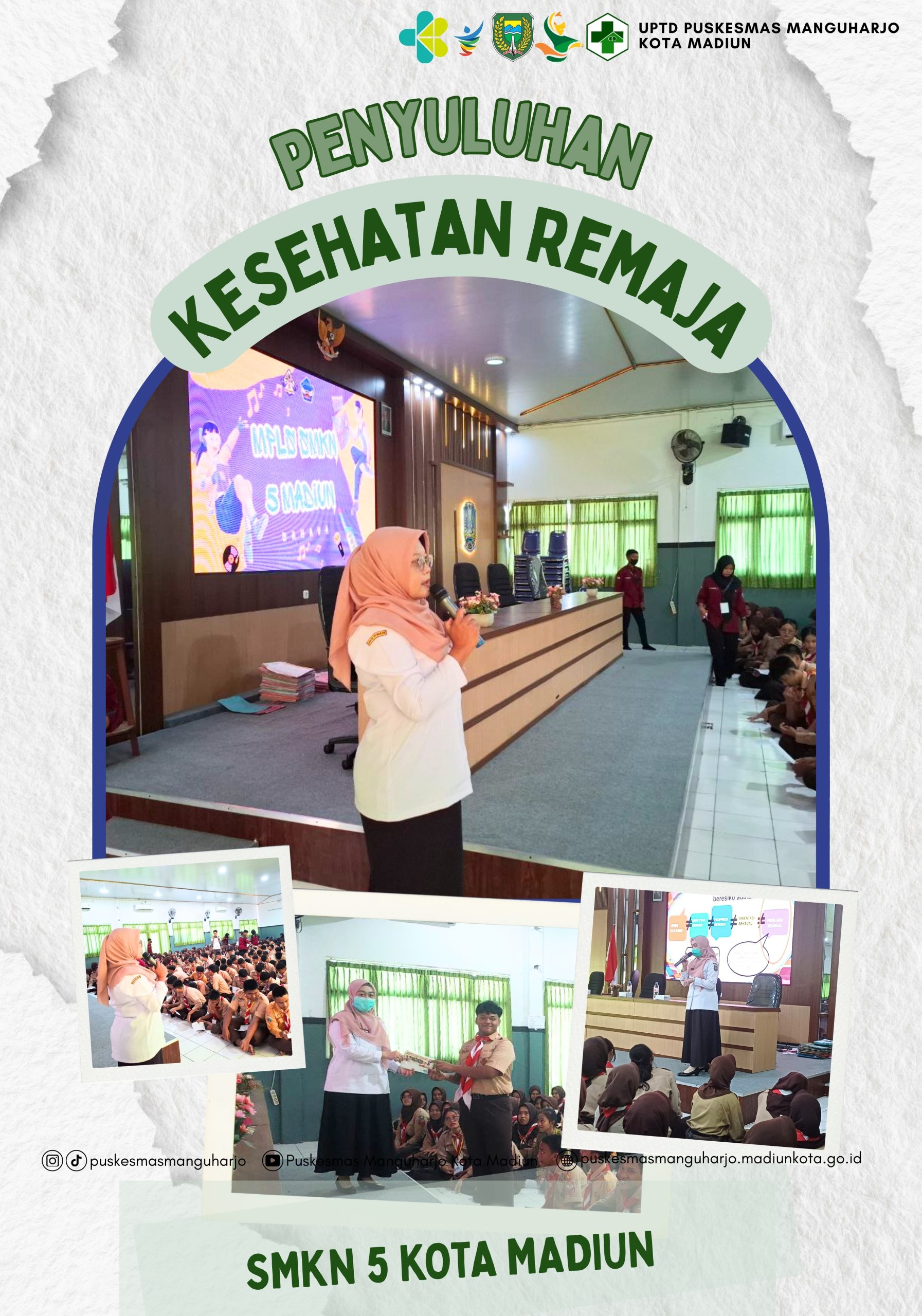 Sebagai upaya mewujudkan generasi muda yang sehat, Puskesmas Manguharjo ikut serta dalam kegiatan MPLS dengan menyampaikan informasi terkait dengan Bahaya Rokok, Napza, serta Kesehatan Reproduksi dan Pencegahan HIV/AIDS di SMKN 5 Kota Madiun pada 16 Juli 2025.