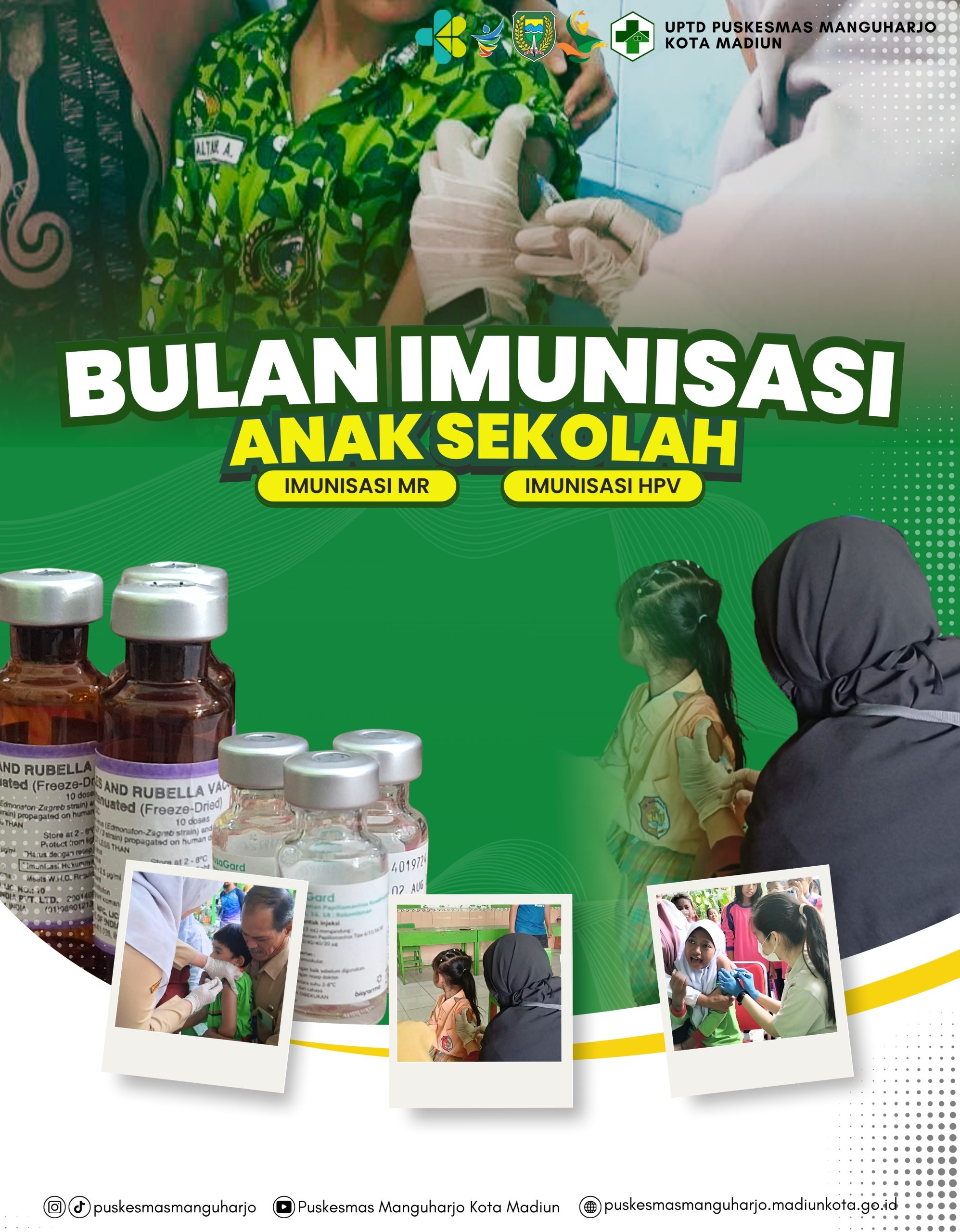 Selama Bulan Agustus Puskesmas Manguharjo telah melaksanakan Bulan Imunisasi Anak Sekolah (BIAS). BIAS adalah program pemerintah untuk memberikan imunisasi lanjutan kepada anak usia sekolah guna meningkatkan kekebalan terhadap penyakit seperti campak, rubella, dan kanker serviks. Vaksin yang diberikan termasuk MR (Measles-Rubella) diberikan untuk anak kelas 1 SD/MI dan HPV diberikan kepada anak perempuan kelas V SD/MI dan kelas IX SMP, yang bertujuan memperpanjang perlindungan tubuh dan melengkapi imunisasi yang telah diterima saat bayi dan mencegah kanker serviks pada anak perempuan usia sekolah dengan memberikan vaksin HPV.